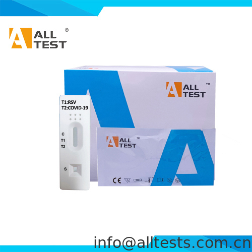 The RSV and SARS-CoV-2 Antigen Combo Rapid Test is a rapid chromatographic immunoassay for the qualitative detection of RSV and SARS-CoV-2 infectious diseases in human nasopharyngeal swab specimens as an aid in the diagnostic of RSV and SARS-CoV-2 infectious diseases.